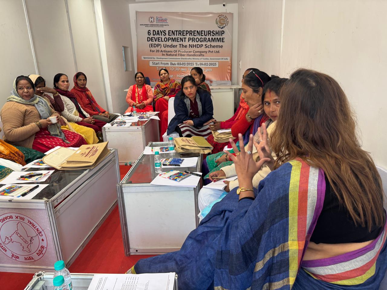 उत्तराखंड के हस्तशिल्प कारीगरों को सशक्त बनाने के उद्देश्य से आयोजित छह दिवसीय उद्यमिता विकास कार्यक्रम (EDP) के तीसरे दिन हस्तशिल्पियों को डिज़ाइन, रंग सिद्धांत, वित्तीय प्रबंधन और ई-कॉमर्स से जुड़ी महत्वपूर्ण जानकारियाँ दी गईं।