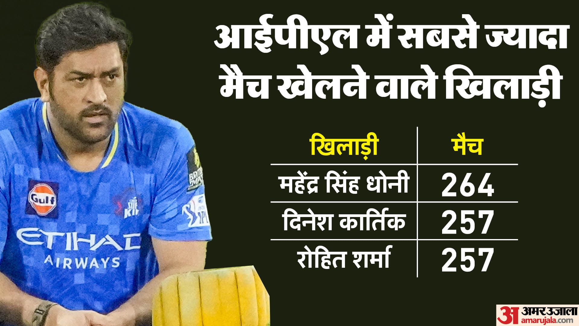इस बार पुराने धुरंधरों का जलवा भी देखने को मिलेगा। 264 आईपीएल मैच खेलने वाले धोनी चेन्नई की, 252 मैच खेलने वाले विराट आरसीबी और 257 मैच खेलने वाले रोहित शर्मा मुंबई की शोभा बढ़ाएंगे। 185 मैच खेलने वाले रहाणे, 212 मैच खेलने वाले अश्विन, मनीष पांडे (171 मैच) रविंद्र जडेजा (240 मैच) की चमक भी देखने को मिलेगी।