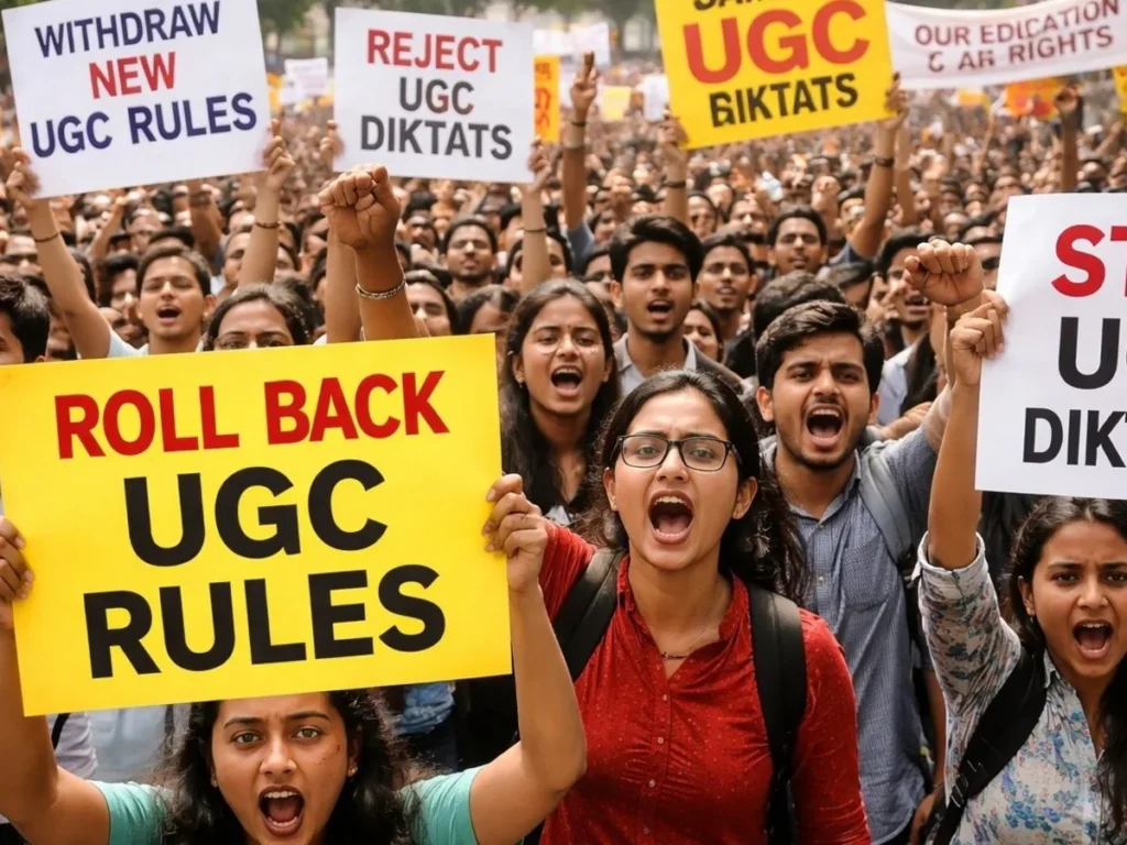 यूजीसी रूल्स 2026 को 15 जनवरी से लागू कर दिया गया है। इसे देश के सभी विश्वविद्यालयों, कॉलेजों एवं उच्च शिक्षण संस्थानों में लागू किया गया है। इसके तहत प्रावधान बताए गए हैं कि कैसे समान अवसर आयोगों का हर संस्थानों में गठन किया जाए। इसके तहत अनुसूचित जाति, जनजाति और अन्य पिछड़ा वर्ग के छात्रों से भेदभाव को रोकने की बात कही गई है। इन रूल्स के सेक्शन 3 (C) में जाति आधारित भेदभाव की परिभाषा बताई गई है। इसमें लिखा गया है- ‘जाति-आधारित भेदभाव’ का अर्थ अनुसूचित जातियों, अनुसूचित जनजातियों एवं अन्य पिछड़े वर्गों के सदस्यों के विरुद्ध केवल जाति या जनजाति के आधार पर भेदभाव है।’ इसी को लेकर आपत्ति जताई जा रही है।