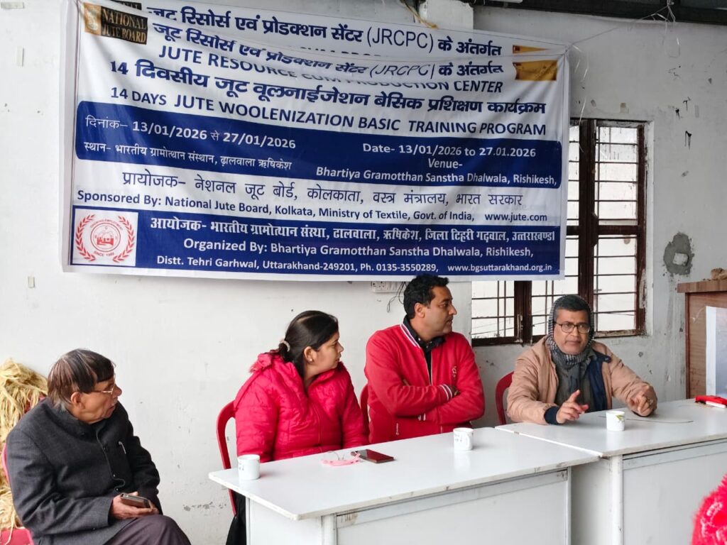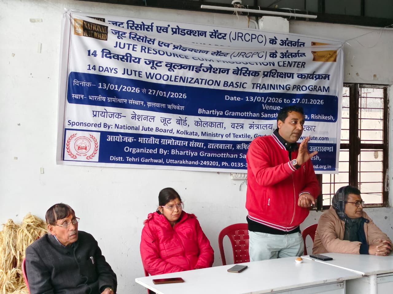 भारतीय ग्रामोथान संस्था, ढालवाला ऋषिकेश द्वारा आयोजित चौदह दिवसीय जूट वूलाइजेशन (Woolization) बेसिक प्रशिक्षण कार्यक्रम का आज सफलतापूर्वक समापन हुआ। यह प्रशिक्षण कार्यक्रम 13 जनवरी 2026 से 27 जनवरी 2026 तक संचालित किया गया।