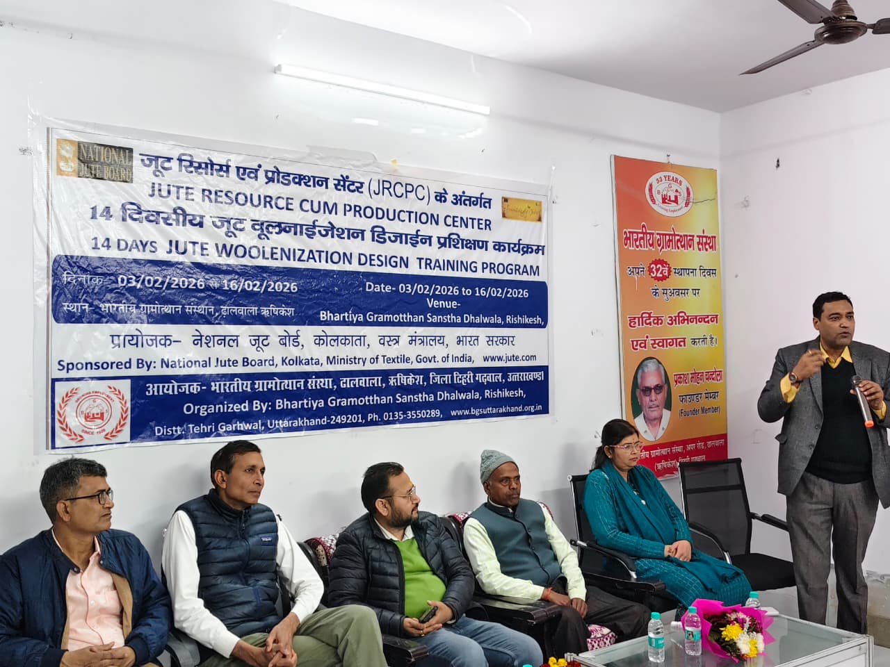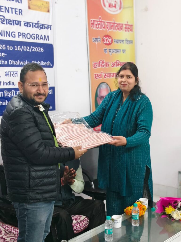 जूट रिसोर्स कम प्रोडक्शन सेंटर (JRCPC) के अंतर्गत भारतीय ग्रामोथान संस्था, ढालवाला ऋषिकेश में आयोजित 14 दिवसीय जूट वूलाइजेशन डिज़ाइन प्रशिक्षण कार्यक्रम का आज सफलतापूर्वक समापन हो गया। यह प्रशिक्षण कार्यक्रम 3 फरवरी से 16 फरवरी 2026 तक संचालित किया गया। कार्यक्रम का आयोजन भारतीय ग्रामोथान संस्था द्वारा किया गया तथा इसे National Jute Board, वस्त्र मंत्रालय, भारत सरकार द्वारा प्रायोजित किया गया। प्रशिक्षण का उद्देश्य महिलाओं को जूट वूलाइजेशन व डिज़ाइन की उन्नत तकनीकों का व्यावहारिक ज्ञान देकर उन्हें स्वरोज़गार एवं उत्पादन कार्यों से जोड़ना रहा।