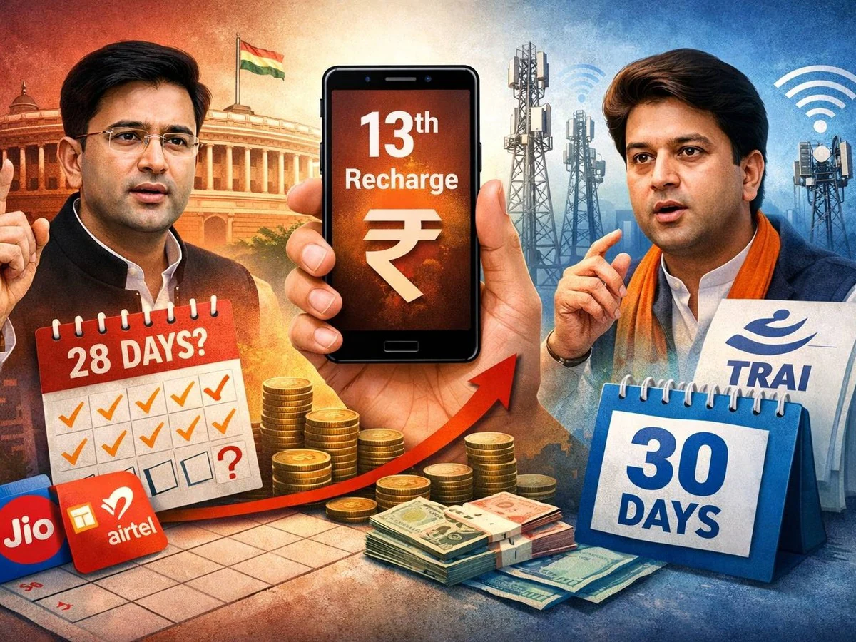 भारत में मोबाइल रीचार्ज प्लान्स को लेकर एक बड़े सच पर चर्चा तेज हो गई है। जिन प्लान्स को कंपनियां ‘मंथली प्लान’ कहकर बेचती हैं, वे असल में पूरे 30 दिन नहीं बल्कि सिर्फ 28 दिन तक ही चलते हैं। इस मुद्दे को हाल ही में संसद में राघव चड्ढा ने उठाया, जहां उन्होंने बताया कि यह सिस्टम सीधे-सीधे सब्सक्राइबर्स की जेब पर एक्सट्रा बोझ डालता है।